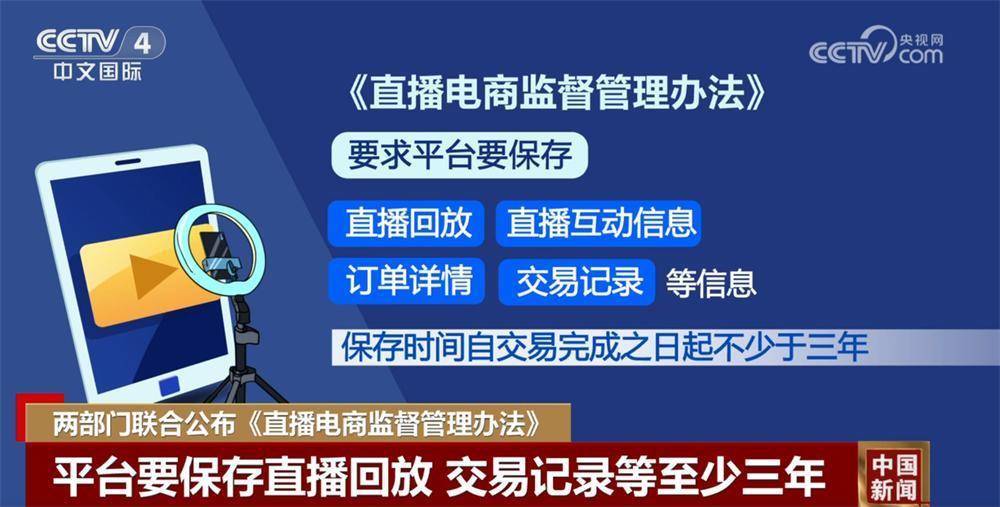 对于直播电商特别是私域直播存在的违法行为取证难等监管问题牛途网,《办法》要求平台要保存直播回放、直播互动信息、订单详情、交易记录等信息,保存时间自交易完成之日起不少于三年。